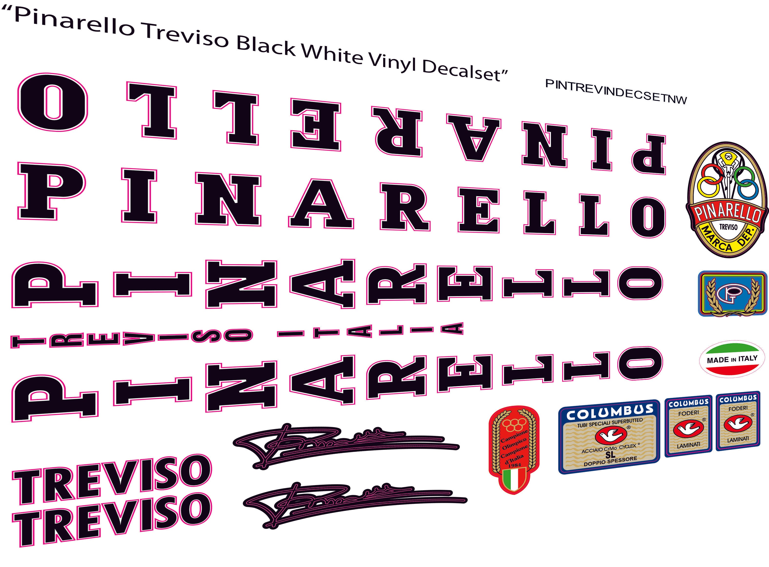 Pinarello Treviso Black White Vinyl Decalset